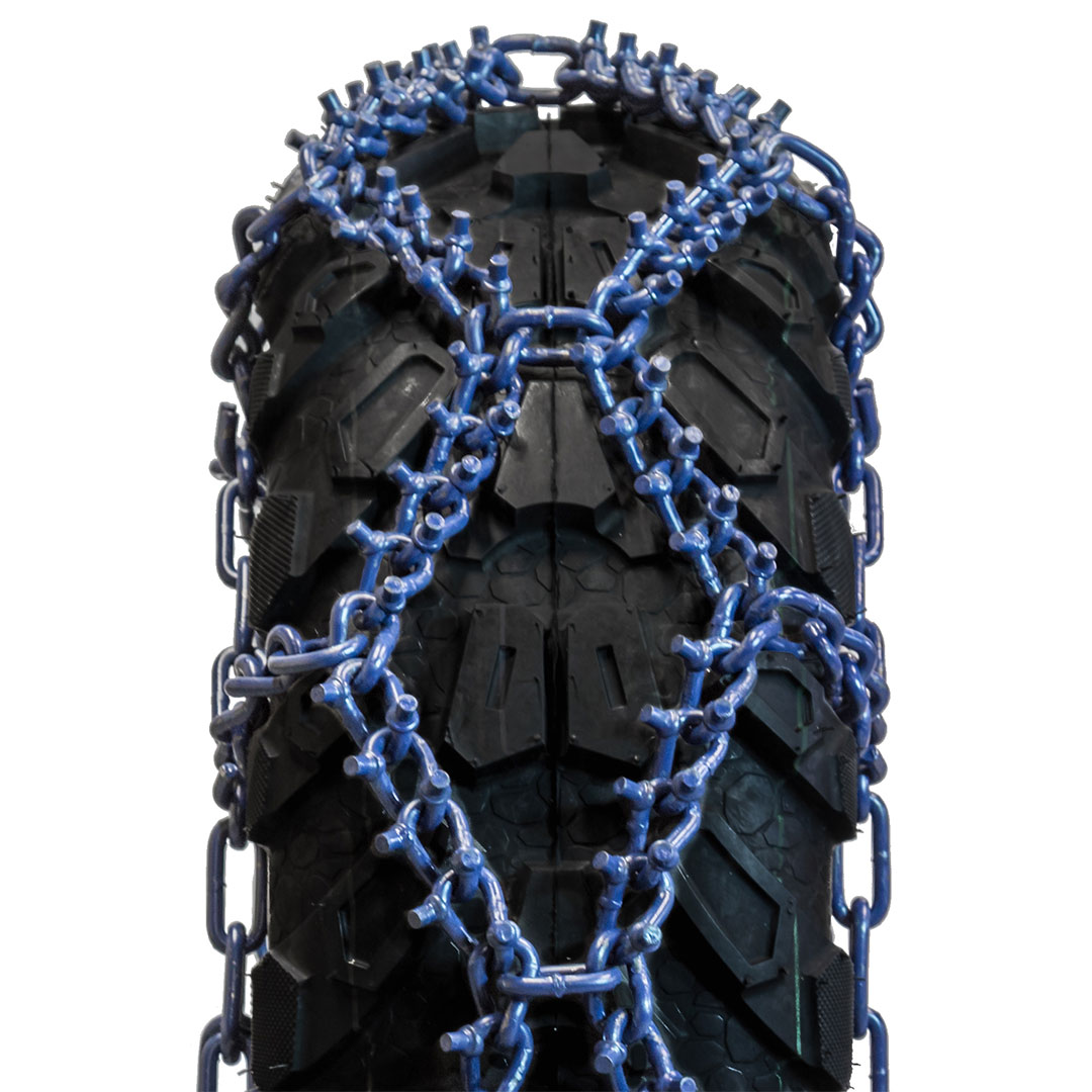LS is a universal studded twisted link chain for front or double wheel outside. Recommended to drive wheel.